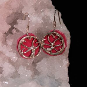 Boucle d’oreille en rhodonite et cristal d’Autriche attache qui ce ferme en argent