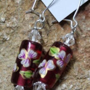 Boucles d’oreilles cristal d ‘Autriche peint a la mains monter en argent et crochet d’ oreille fermé
