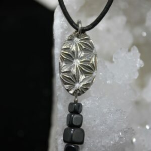 pendentif ovale avec hématite lien en cuir de 45 cm Ref056 Poids 2.03g