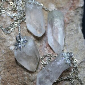 Pendules en cristal de roche pointe de quartz avec chainette plaqué argent